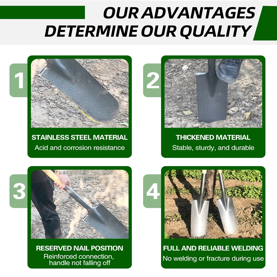 Vysoce kvalitní kovová ocelová lopata pro zemědělství, stavebnictví, zemědělství a zahradnictví – ruční nářadí – lopata s držadlem