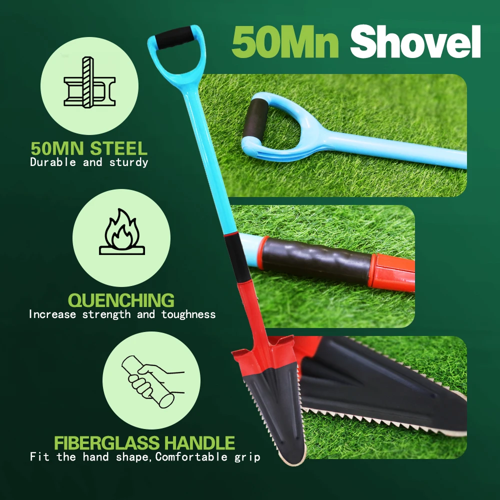 50MnSteel Material: This shovel is built with rugged 50Mn steel that is high-strength and will never rust which makes it as tough as nails!