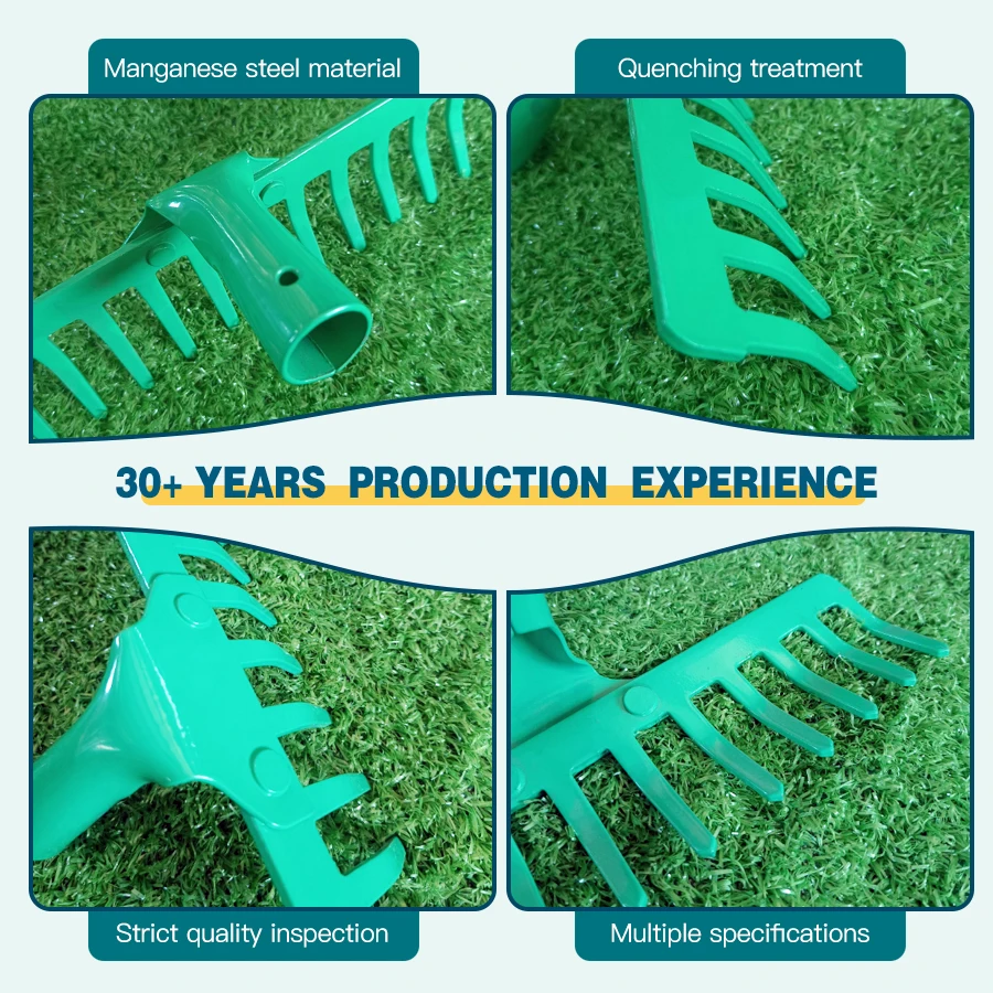 RENHE:s verifierade leverantör Trädgårdskäppar med 12 tänder, metallkäppar för löv är idealiska för både hemmabruk och kommersiell användning, vilket gör dem till ett mångsidigt verktyg för alla utomhusytor. Från små trädgårdar till stora jordbruk och landskapsprojekt är denna käpps effektivitet och hållbarhet oslagbar.