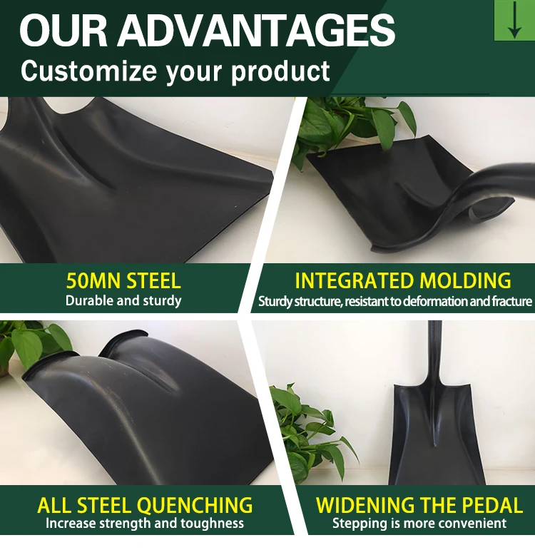 Wholesale na Ulo ng Pala para sa Pagsasaka at Hardin na Gawa sa Carbon Steel na 50Mn, Kuwadrado o Bilog, Walang Pahapyaw
