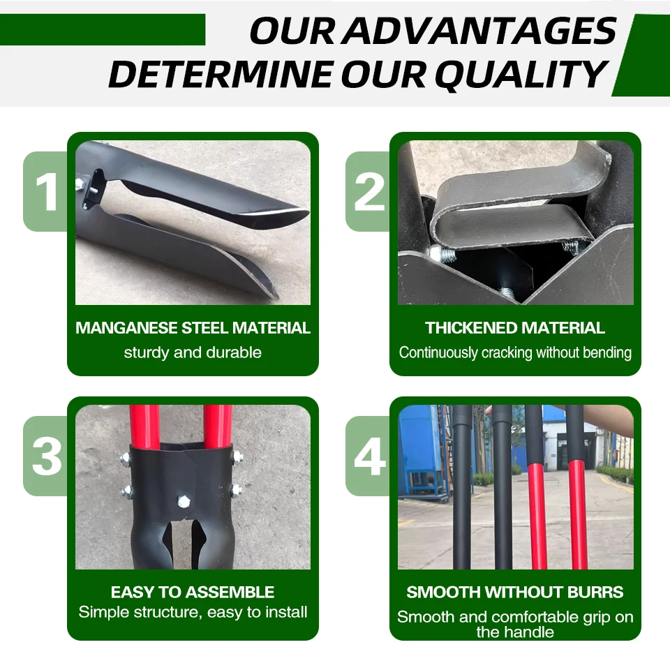 Dayanıklı yapısıyla RENHE El Posta Delik Kazma Makinesi, günlük çiftçilik görevlerinin zorluklarına dayanacak güvenilirliği sağlar. Sağlam tasarımı sayesinde zorlu koşullarda ve zor işlerde bile kırılmaya veya bükülmeye karşı dayanıklılık gösterir. Bu da onu, mevsimler boyunca güvenilir bir şekilde kullanabileceğiniz bir araç haline getirir.